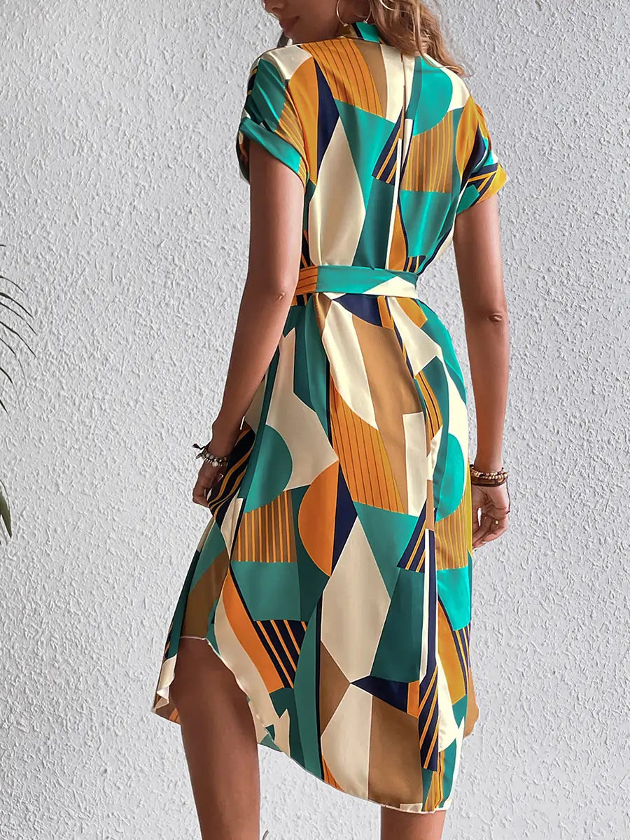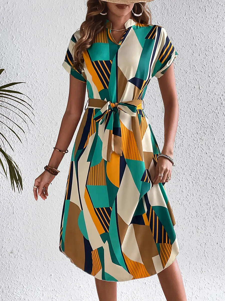 Robe ceinturée multicolorée verte