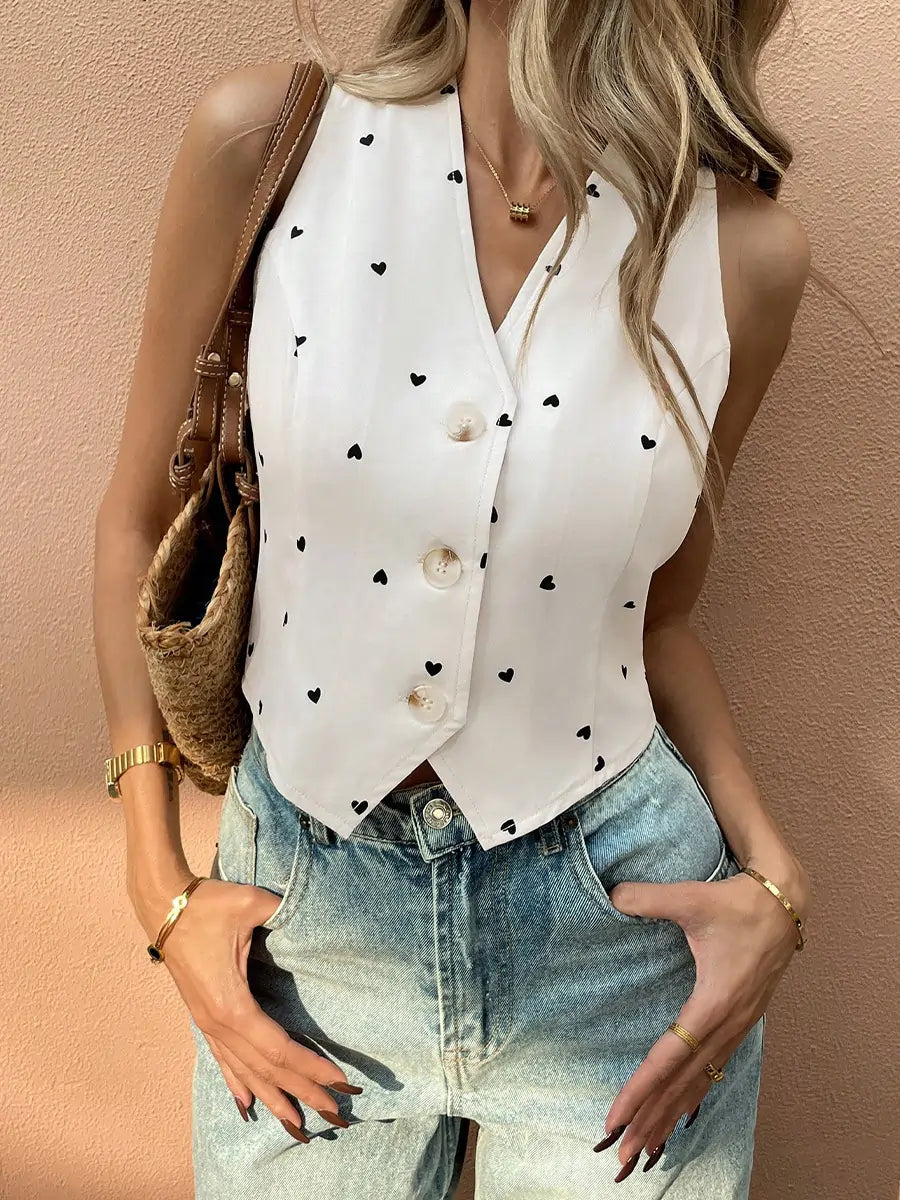 Caractéristiques du produit Matière : 100% Polyester Longueur des manches : Sans manches Encolure : Col en V Fermeture :...